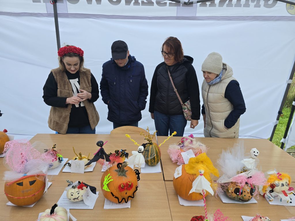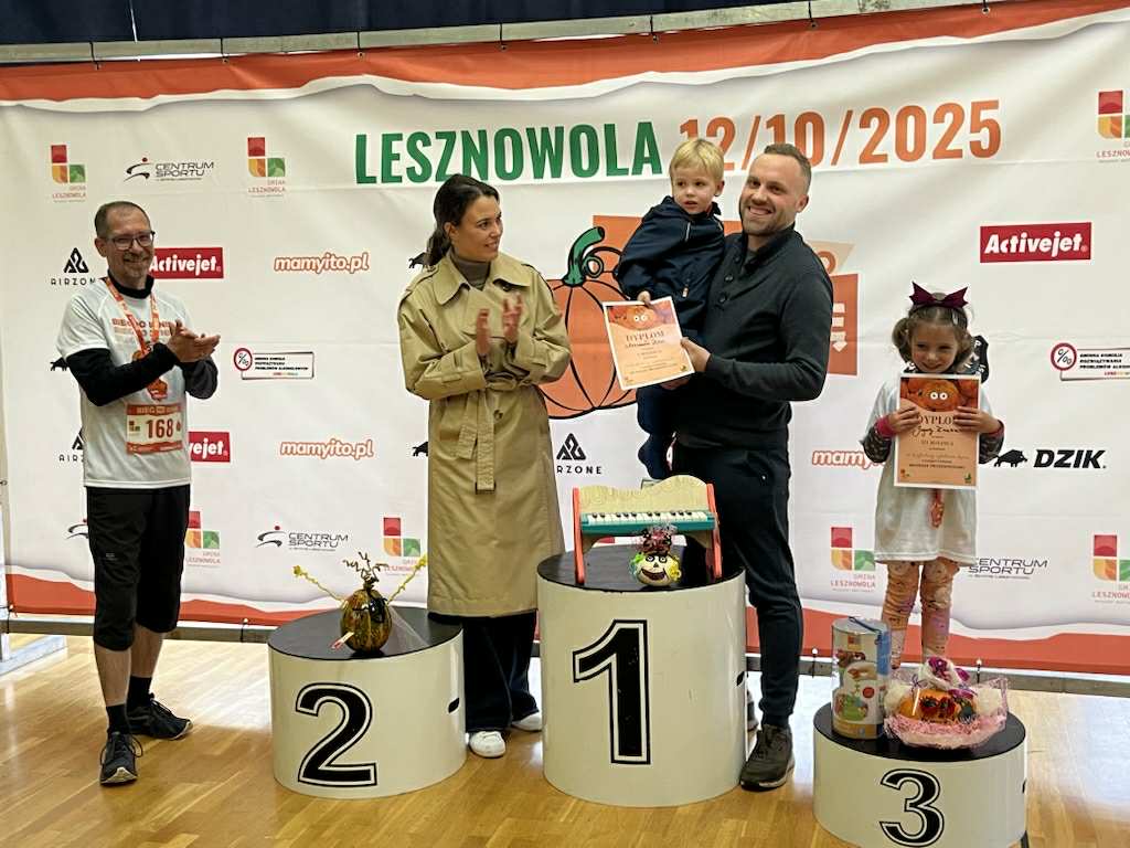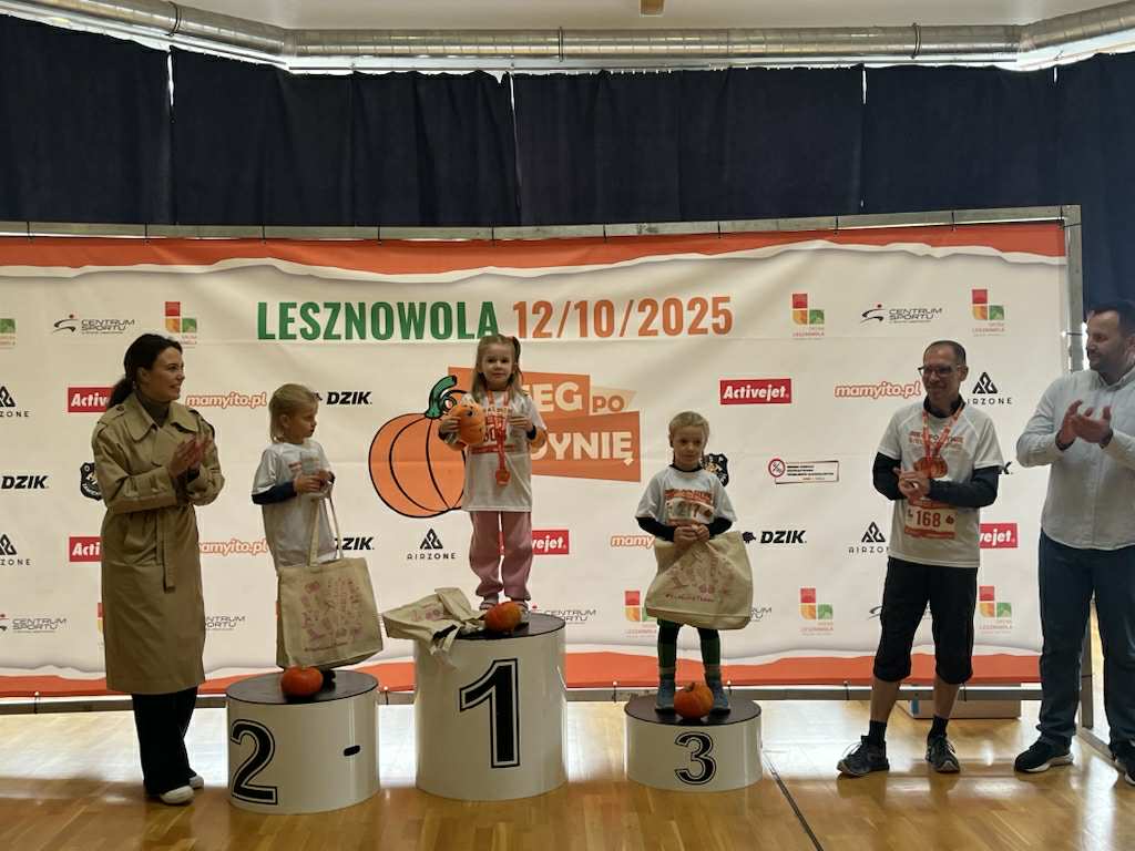 12 października br. w naszej gminie odbyło się coroczne wydarzenie Bieg po Dynie i Święto Dyni, które zgromadziło tłumy mieszkańców oraz gości. Impreza przyciągnęła uczestników w różnych kategoriach wiekowych, od najmłodszych po dorosłych. Bieg dzieci i młodzieży trwał od godziny 10:00 do 11:20, a zawodnicy biegu głównego zmierzyli się z trasą o długości 5 km, startując o godzinie 12:00. Wszyscy uczestnicy zasługują na gratulacje, a szczególne wyróżnienia otrzymali zwycięzcy, którzy zostali nagrodzeni medalami oraz upominkami. O godzinie 13:00 miała miejsce ceremonia wręczenia nagród, którą dokonała Pani Marta Natalia Maciejak – Wójt Gminy Lesznowola w towarzystwie swojego zastępcy, Pana Marcina Szosta. Pamiątkowe statuetki wręczał również Pan Łukasz Grochala – Przewodniczący Rady Gminy oraz Państwo Radni – Pani Agnieszka Muranowicz i Pan Paweł Olkowski. Wydarzenie obfitowało w sportową rywalizację, radość oraz wsparcie ze strony kibiców, co sprawiło, że mimo niesprzyjającej pogody, na wydarzeniu pojawiło się mnóstwo osób. Święto Dyni, które towarzyszyło biegowi, oferowało szereg atrakcji dla całych rodzin. W programie znalazł się m.in. konkurs plastyczny dla dzieci na „Najładniej ozdobioną dynię”. Wybór prac przez komisję konkursową w składzie: Pani Beata Osica (Gminna Biblioteka Publiczna w Lesznowoli), Pani Agnieszka Muranowicz (Radna Gminy Lesznowola), Pani Marta Krzemińska (Sołtys Sołectwa Nowa Iwiczna) oraz Pan Jan Drewicz (Instruktor GOK Lesznowola), który nadzorował cały proces konkursowy, okazał się niełatwym zadaniem. Wszystkie prace były niezwykle piękne i wykazywały ogromny talent ich autorów. Serdecznie gratulujemy dzieciom zaangażowania i wspaniałych umiejętności :). Na dzieci czekało też wiele innych atrakcji – animacje, tańce, przejażdżki na kucykach oraz kolorowe warkoczyki dla dziewczynek, które ozdabiały im włosy. Nie zabrakło również wystawców z rękodziełami oraz różnorodnymi smakołykami, a także stoisk KGW NI Nowa Iwiczna oraz KGW Zamienie, które jak zawsze zaskakują nas pysznymi wyrobami i nie tylko :).