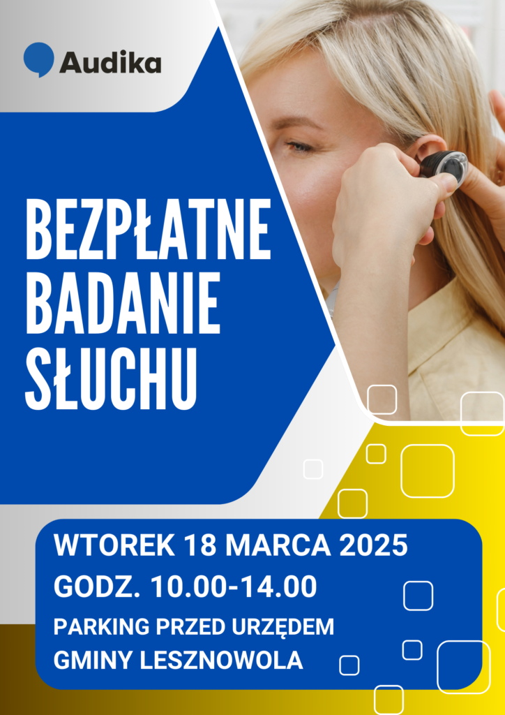 We wtorek 18 marca 2025 r. w godzinach 10.00-14.00. będzie można wykonać bezpłatne badanie słuchu.