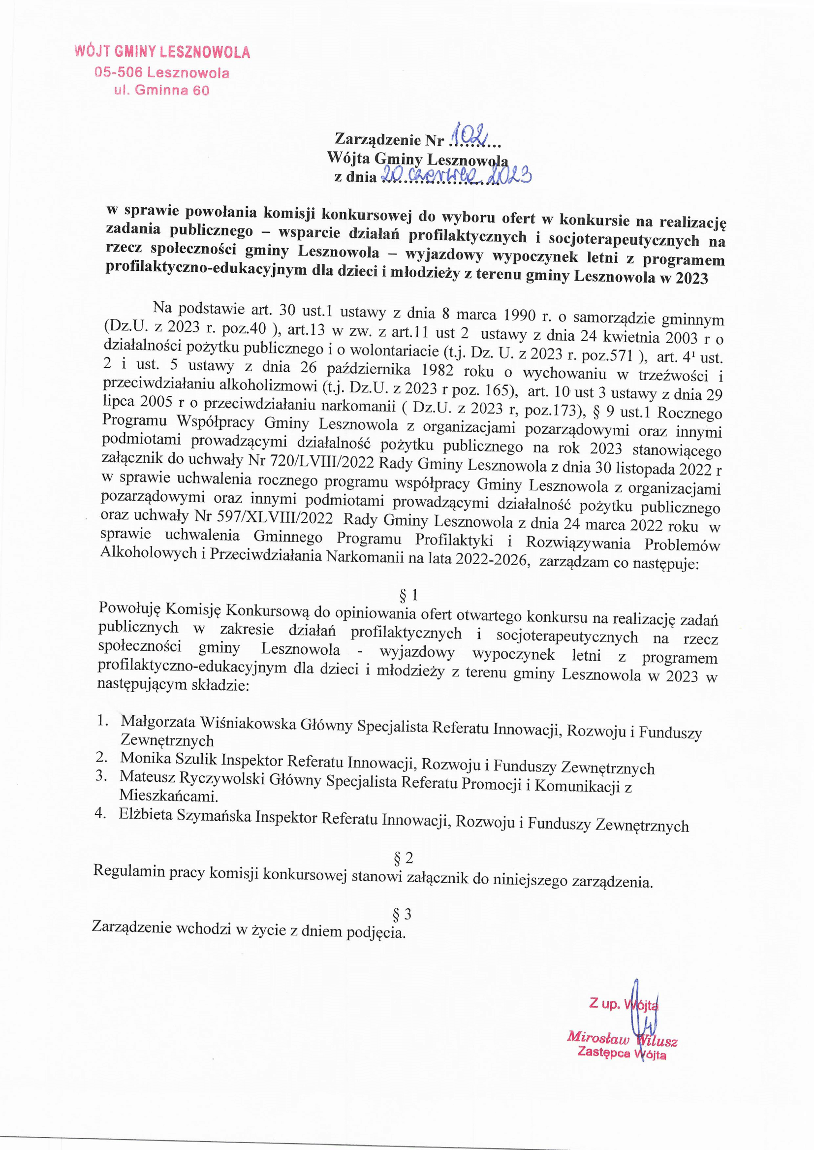 w zakresie wsparcia działań profilaktycznych i socjoterapeutycznych na rzecz społeczności gminy Lesznowola – wyjazdowy wypoczynek letni z programem profilaktyczno-edukacyjnym dla dzieci i młodzieży z terenu gminy Lesznowola w 2023.